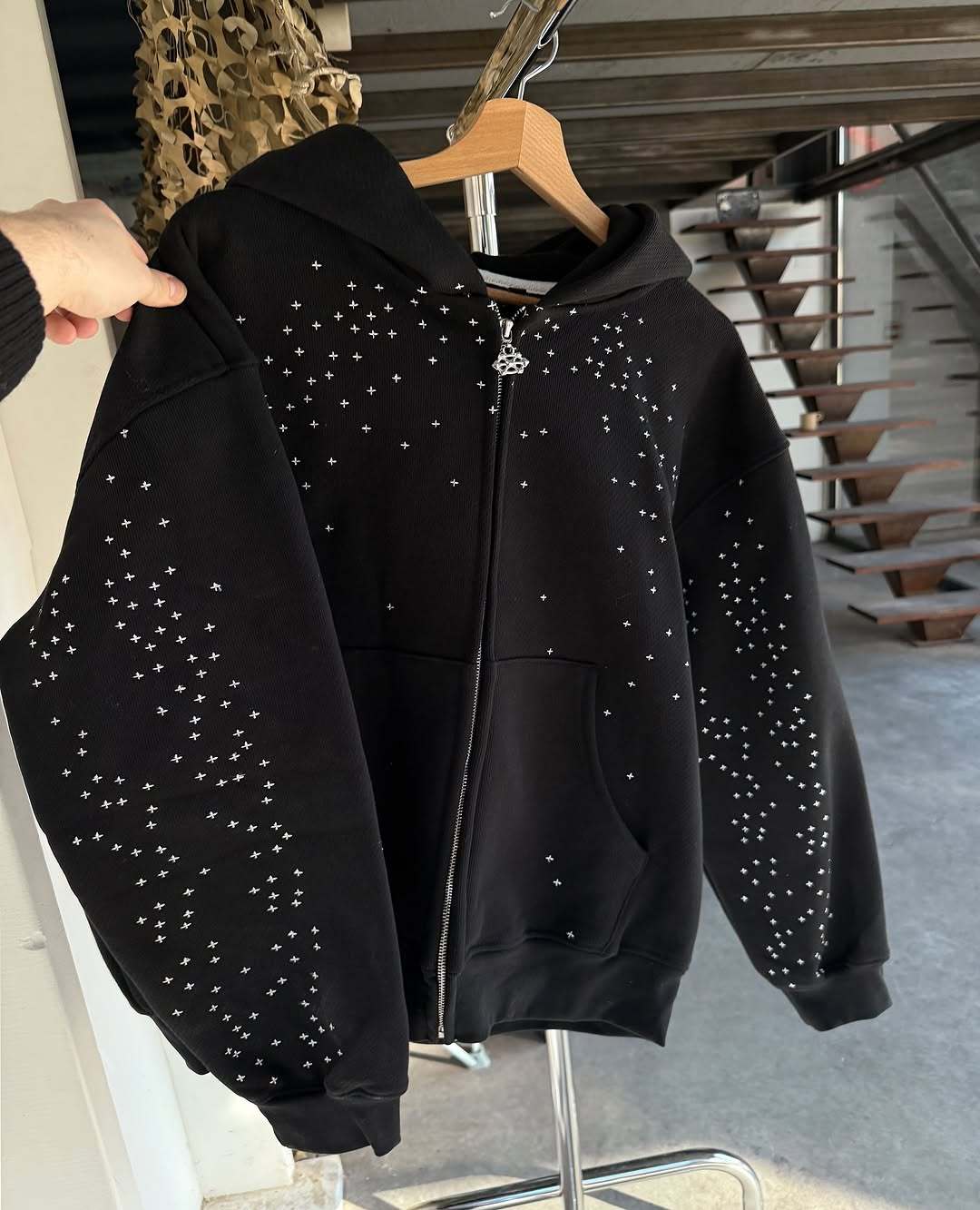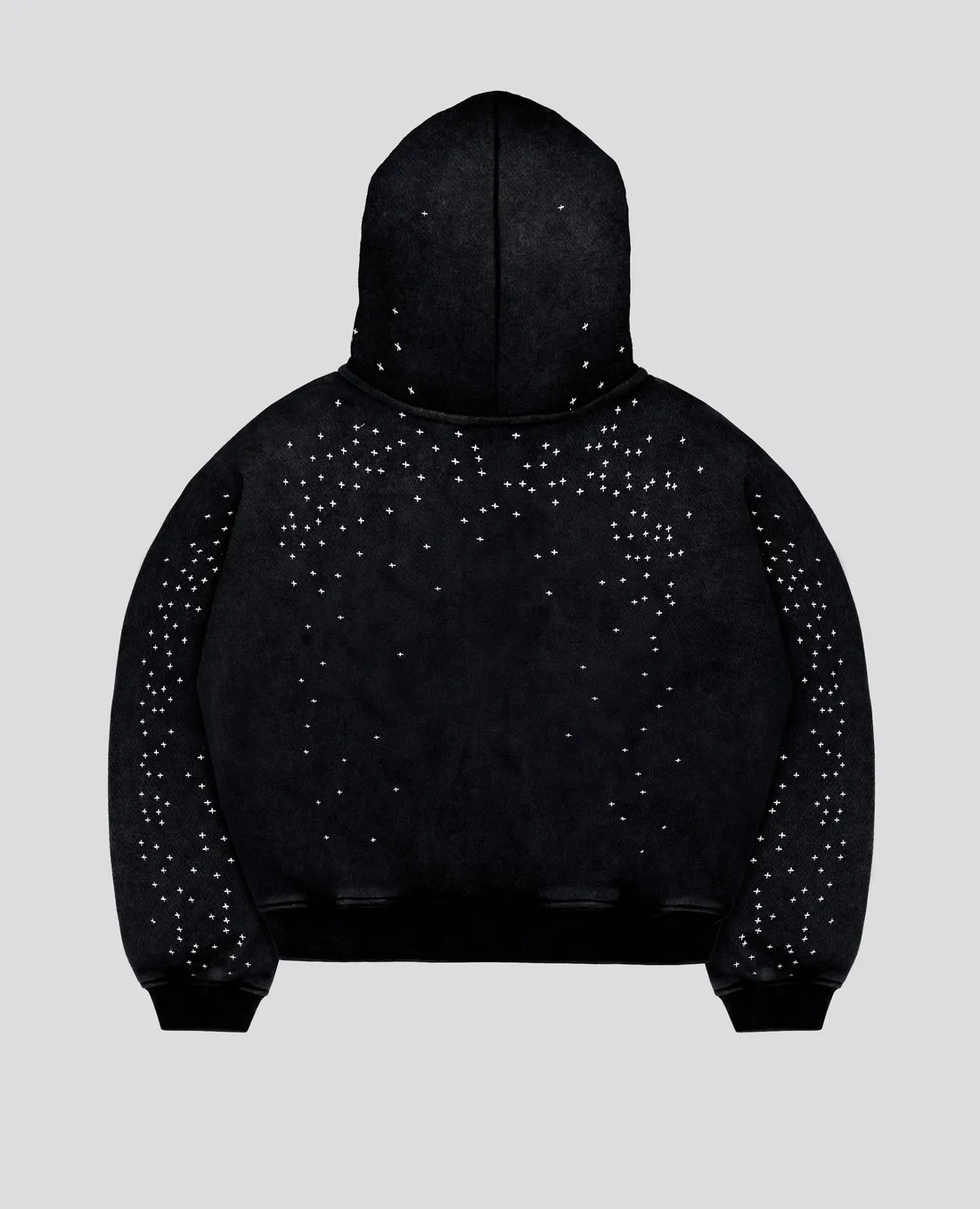 Delicate cross embroidery creates a unique starry sky atmosphere.